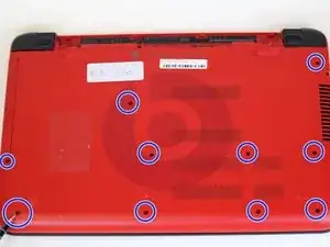 Переверните компьютер и начните с удаления видимых винтов размером 8 мм с помощью отвёртки Phillips #0.