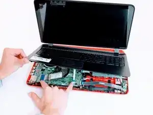 Используйте это руководство, чтобы помогать разбирать панель клавиатуры для замены деталей, расположенных под ней.