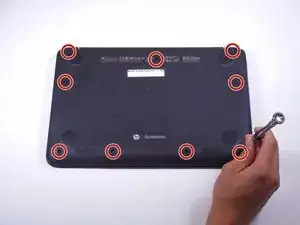 Открутите девять крестовых винтов №00 длиной 6 мм, расположенных вдоль края.