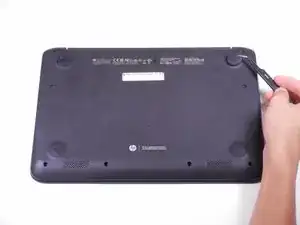 Открутите два крестовых винта №00 длиной 4 мм, расположенных по бокам от горизонтального чёрного крепёжного элемента над тачпадом.