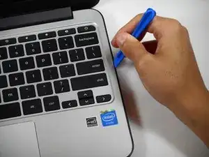 Отщёлкните крепление клавиатуры вдоль края ноутбука с помощью пластикового инструмента для вскрытия.