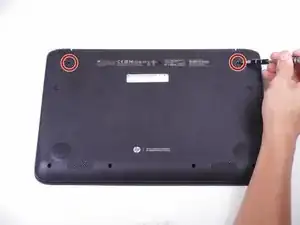 С помощью пинцета снимите две резиновые ножки, расположенные ближе всего к петлям.