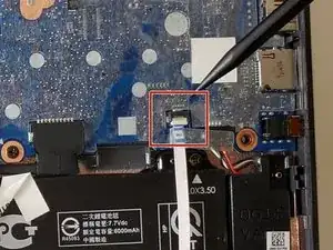 Используйте конец лопаточки или ноготь, чтобы поднять маленькую фиксирующую клапан на каждом разъёме. Затем вытяните разъём.