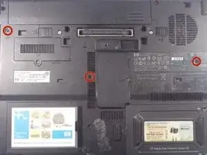 Найдите и удалите 3 винта, удерживающие клавиатуру на месте, снизу ноутбука.