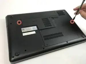 На задней панели ноутбука находятся два винта с символом клавиатуры рядом с ними.
