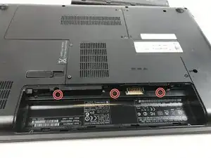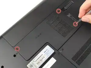 Слева направо открутите винт 5,5 мм, винт 7 мм и винт 5,5 мм, расположенный в панели батареи, отверткой.