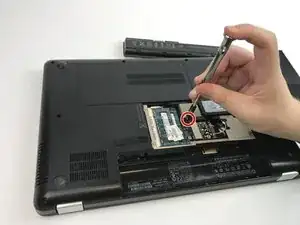 Внутри панели оперативной памяти используйте отвертку, чтобы удалить винт 5 мм, изображенный на фото.