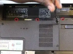 В отсеке для батареи есть три винта, которые удерживают клавиатуру. Эти винты расположены сбоку ближе к передней части.