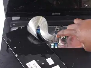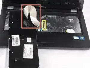 На задней стороне клавиатуры есть шлейф, который все еще подключен. Не вытаскивайте шлейф, когда поднимаете клавиатуру.