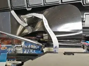 Выньте чёрный ленточный кабель из его разъёма.