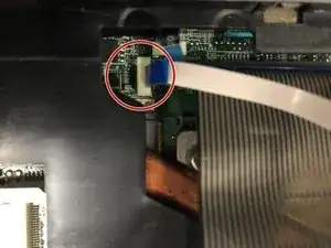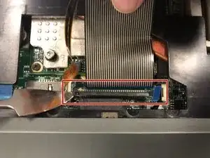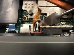 Используя пинцет или пальцы, аккуратно потяните вверх за ленточный кабель и полностью отсоедините его от компьютера.