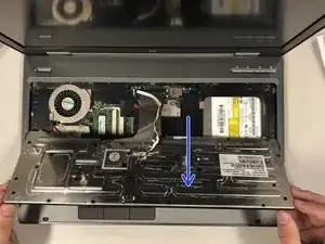 Используя пальцы или инструмент, начните поддевать и снимать верхнюю часть панели клавиатуры.
