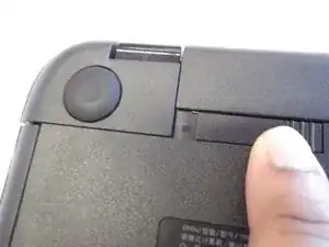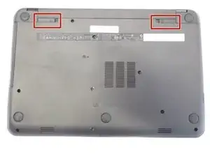 На нижней части ноутбука, ближе к петле экрана, расположены два прямоугольных ползунковых переключателя, находящиеся внутри прямоугольных дорожек.
