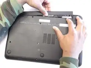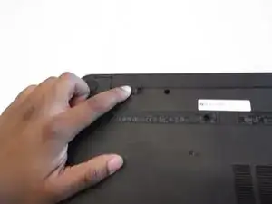 Закройте ноутбук и переверните его, чтобы посмотреть на нижнюю часть.