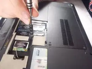 Винты должны остаться в панели, но свободно выйти из корпуса ноутбука.