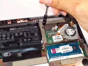 Удалите три винта 4,0 мм рядом с индикатором клавиатуры с помощью крестообразной отвертки Phillips #1.