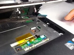 Поднимите чёрный фиксатор, прикреплённый к кабелю клавиатуры, пока он не окажется в вертикальном положении.
