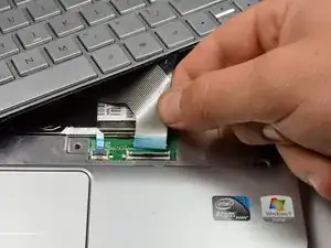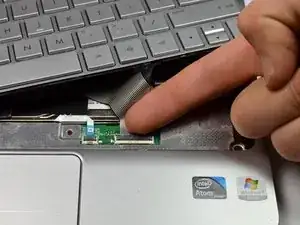 К клавиатуре подключён шлейф, поэтому не пытайтесь полностью снять клавиатуру на этом этапе, иначе вы повредите устройство.