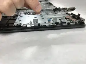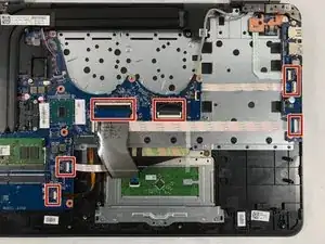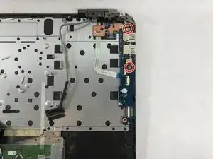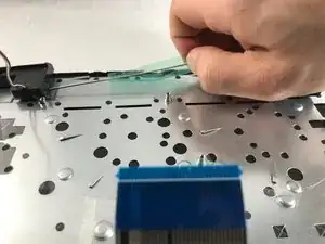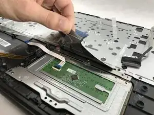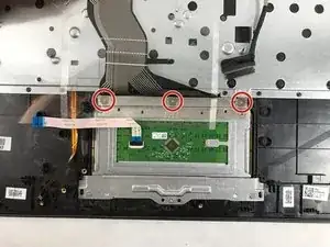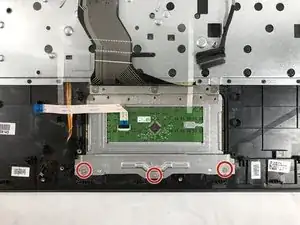 Открутите три винта Phillips #00 длиной 1,2 мм, крепящих пластину под тачпадом.