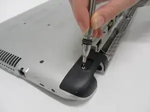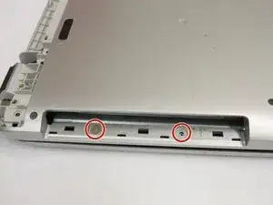 Удалите два широкоголовых винта 2,4 мм из отсека оптического привода крестовой отверткой Phillips #0.