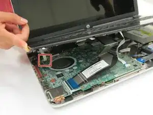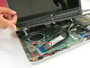Отсоедините шлейф, соединяющий клавиатуру с материнской платой.