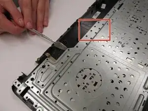 Поднимите металлический корпус с передней панели, чтобы отделить клавиатуру от верхней панели.