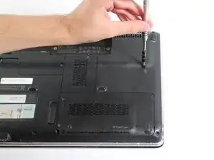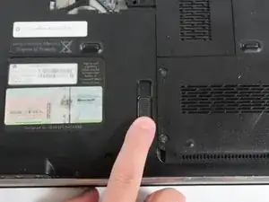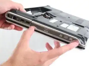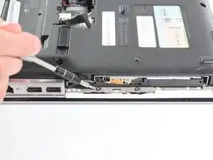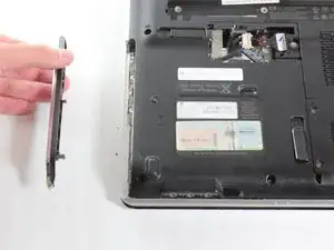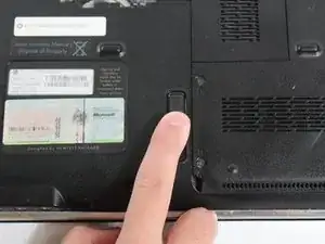 Найдите оптический привод на левой нижней стенке ноутбука.