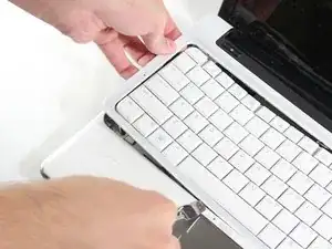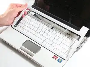 Аккуратно приподнимите рамку вокруг клавиатуры, не снимая саму клавиатуру.
