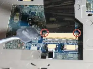 Отключите два ленточных кабеля, подключённых к рамке вокруг клавиатуры.