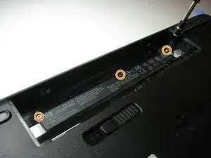 Используйте крестовую отвертку, чтобы удалить три винта в отсеке для аккумулятора.