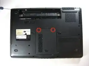 Снимите аккумулятор с задней части компьютера.