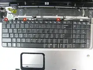 С помощью отвертки Phillips #1 удалите три винта длиной 5 мм, удерживающие клавиатуру на месте.