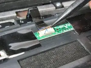 С помощью лопатки отсоедините шлейф, отдвинув коричневую защелку от печатной платы и извлеките шлейф рукой.