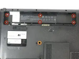 Удалите шесть винтов длиной 5 мм в отсеке для аккумулятора с помощью отвертки Phillips #1.