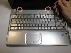 После удаления винтов из корпуса батареи откройте ноутбук, чтобы снять рамку клавиатуры.