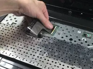С помощью пластикового инструмента для вскрытия поднимите фиксирующую вкладку на разъёме с нулевым усилием вставки (ZIF).