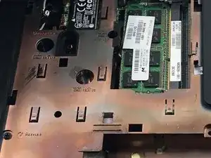 Он расположен рядом с модулем оперативной памяти, а отверстие для винта обозначено символом клавиатуры с подписью M2.5×6.5.