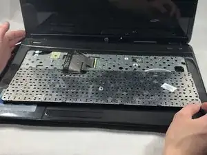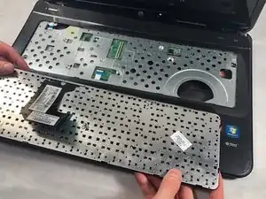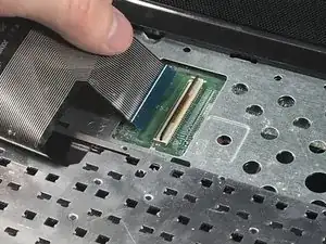 Вытащите ленточный кабель клавиатуры из разъёма.