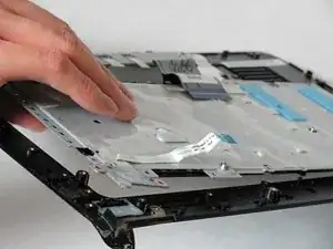 Медленно отделите основную часть клавиатуры от металлической пластины, сильно нажав на сторону клавиш клавиатуры и приподняв с обратной стороны.