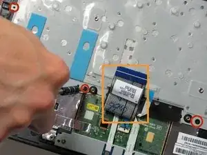 Отсоедините шлейф, соединяющий клавиатуру с аппаратным обеспечением.