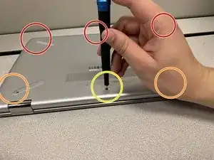 Используйте джимми, чтобы снять опорные накладки, расположенные в нижней части ноутбука.