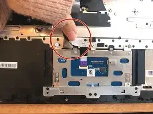 Снимите две ленты, соединяющие плату тачпада и панель клавиатуры.