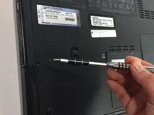 Под поднятой панелью должно быть видимо 5 винтов. Открутите все винты, крепящие клавиатуру к ноутбуку.