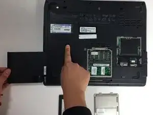 Затем удалите аккумулятор, нажав на переключатель разблокировки аккумулятора и вытяните его.