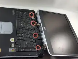 Снова используйте отвёртку Phillips #0, чтобы выкрутить все четыре винта PM 2,5X13,0 мм сверху клавиатуры, и отложите их в сторону.