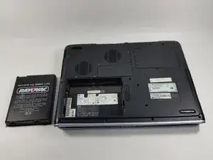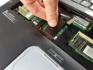 Поверните Pavilion вверх дном и найдите аккумулятор в левом нижнем углу.