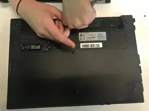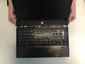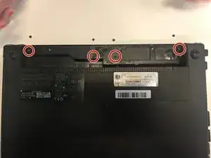 Снимите четыре черных винта с крестообразной головкой на 3 мм, расположенные прямо над клавиатурой.
