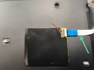 Может быть клей, соединяющий шлейф с клавиатурой (зелёная стрелка).