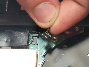 Для этого не требуется больших усилий, поэтому не тяните слишком сильно. Кабели выйдут вместе со сборкой дисплея.