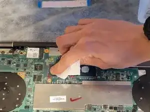 Отключите разъём аккумулятора, расположенный на материнской плате.